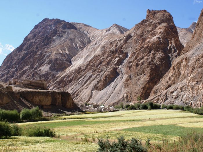 4h de marche traversant des champs d'orge qui ondulent au vent, tout en longeant la rivière de la Marka au passage visite du monastère de YENSA, accroché à flanc de montagne.