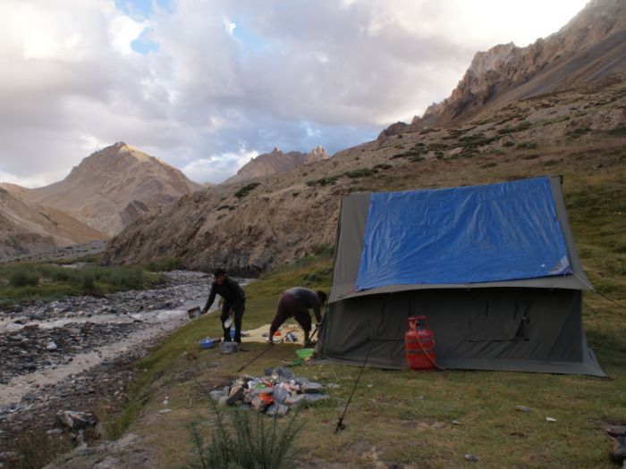 3 à 4h de marche pour atteindre le campement de Yakrupal, camp de base du Zalung Karpo La, le col le plus haut du trek. Nuit en campement (4685m)