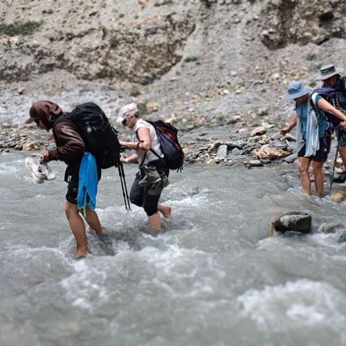 Une heure et demi de marche pour atteindre la vallée de Goarge, puis Tilat Nallah, où se trouvent les campements nomades près desquels vous passerez la nuit .