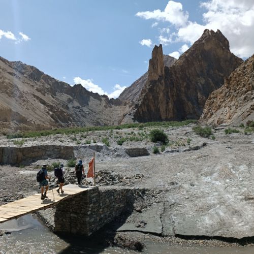 4h de marche traversant des champs d'orge qui ondulent au vent, tout en longeant la rivière de la Marka au passage visite du monastère de YENSA, accroché à flanc de montagne.